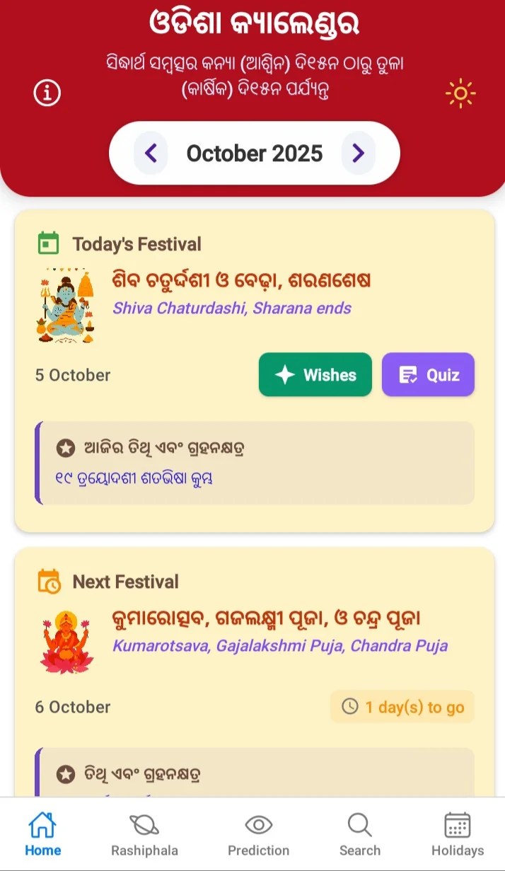 OKAL ଓଡ଼ିଆ କ୍ୟାଲେଣ୍ଡର ଆପ୍ – ବେଦିକ ତିଥି, ନକ୍ଷତ୍ର, ଏକାଦଶୀ, ପୂର୍ଣ୍ଣିମା, ସଂକ୍ରାନ୍ତି, ରାଶିଫଳ, ମୁହୂର୍ତ୍ତ ଓ ସରକାରୀ ଛୁଟି ସହ।